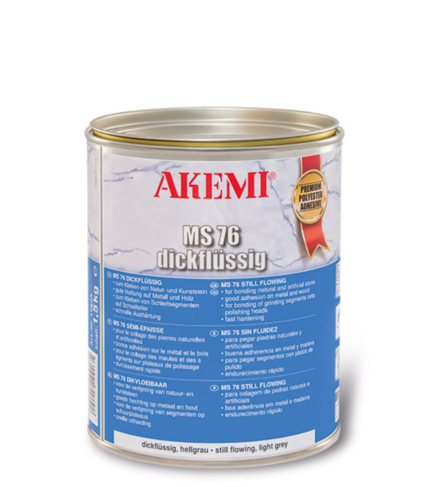 Akemi MS 76 Żywica Poliestrowa do kamienia– dwuskładnikowy klej na bazie żywicy poliestrowej. Klej po utwardzeniu nadaje się do polerowania.