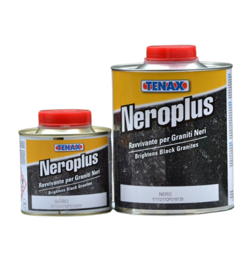 TENAX NERO PLUS NERO Impregnat do czarnego granitu– produkt stosuje się aby ujednorodnić kolor czarnych granitów typu Nero Africa, Nero Impala i podobnych. Jego zastosowanie powoduje ciemnienie materiału jak również to, że jego powierzchnia staje się bardziej jednorodna i bardziej błyszcząca. Używany głównie na powierzchniach surowych, szlifowanych i polerowanych. Nie tworzy warstwy na powierzchni i nie żółknie.